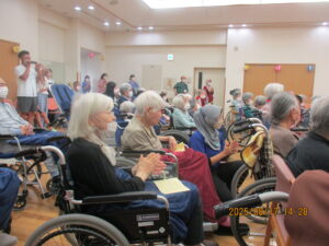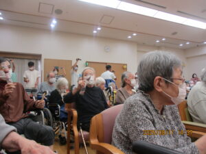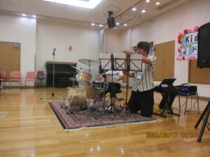 8月17日 キッズドラム演奏会が行われました🥁。当日は、年長さんから小学1年生・2年生までのお子さん達が元気一杯に登場し、会場を明るく楽しい雰囲気に包み込んでくれました。演奏された曲目は、若い世代に人気の「千本桜」や「唱」、テンポの良い「はいよろこんで」そしてコミカルで印象的な「強風オールバック」などバラエティー豊かなラインナップ。お子さん達は一人ひとり真剣な表情でリズムを刻みながら、迫力あるドラムパフォーマンスを披露し、観客である入居者様や職員からは大きな拍手が送られました。そして最後にはアンコールの声に応えて、なんと「マツケンサンバ」が披露されました!🥁手拍子や笑顔があふれる中、演奏会は大盛況のうちに幕を閉じました。可愛らしくも力強いお子さん達の姿に、たくさんの元気と癒しをもらえた素敵なひとときでしたご協力いただいた皆様、そして出演してくれたお子さんたち、本当にありがとうございました。